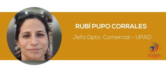 14:40-15:25 Conferencia especializada 'Comercialización de Bienes y Servicios para el Diseño y Montaje de Eventos Deportivos y No Deportivos', por Rubí Pupo Corrales Directora del Dpto. Comercial de la UPAD.
